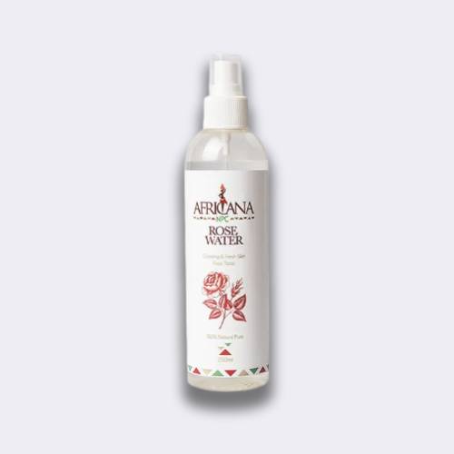 مياة الورد من افريكانا طبيعي 100% خالية من أي مواد كيميائية أو حكول تحتوي علي فيتامين a.d.e وتتكون من بتلات الورد الفرنسي حجمها 250 ملي